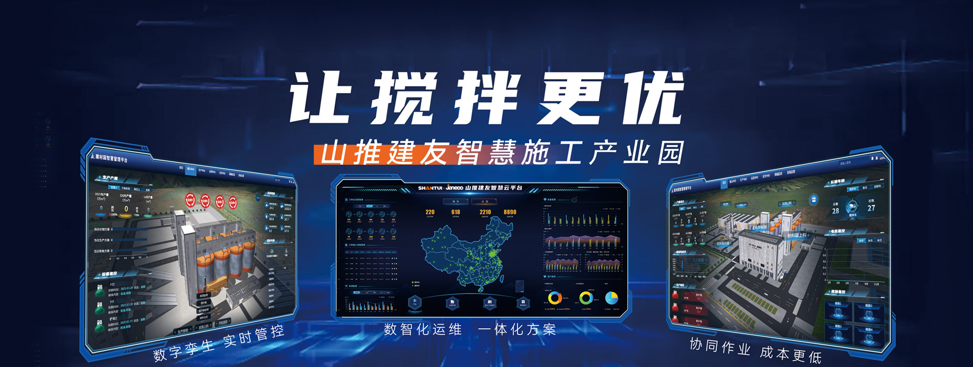 山推建友機(jī)械股份有限公司主營(yíng)混凝土攪拌站、瀝青攪拌站、穩(wěn)定土拌合站、干混砂漿站、制砂站、破碎線、混凝土攪拌運(yùn)輸車(chē)、圾處理設(shè)備及拖泵、砂石分離機(jī)等各類(lèi)攪拌機(jī)械。